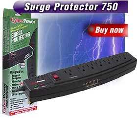 The Model 750 surge protector is a Home/Office Computer Surge Protector. It provides protection from lightning induced surges and spikes. The Model 750 is Internet Ready with 1 in / 2 out phone/fax/modem protection.
