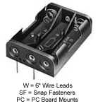 Holds 4 AAA Batteries, 6" Wire Lead |