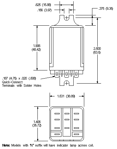 .187" 3-way terminals suitable for plug-in, solder, and Quick connect